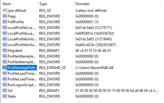 Vous pouvez d'ailleurs voir la session concerné par les dossiers en cliquant une fois dessus et lire ce qui est marqué dans la colonne de droite sur la ligne ProfileImagePath